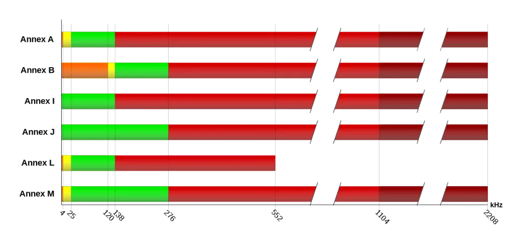 Übrigens: Annex J wird nur bei ADSL und ADSL2+ verwendet. VDSL nutzt immer Annex B, lässt also die unteren Frequenzbereiche unter den Tisch fallen.