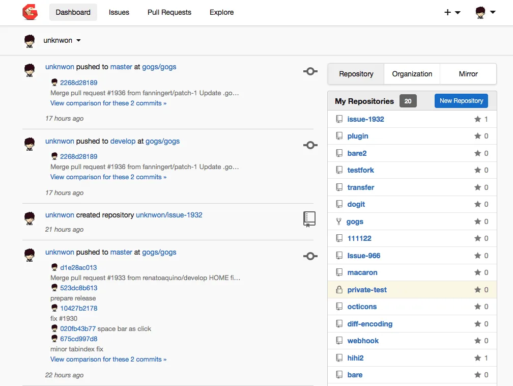The Gogs Git-Server is a central repository for your private git projects. Usually, you wouldn't need a git server at all, or you would probably use GitLab. But GitLab can be a complex mess, so I was looking for an easy-to-use alternative. Other well-known git servers are e.g. Atlassian Bitbucket, Gitblit and GitList.